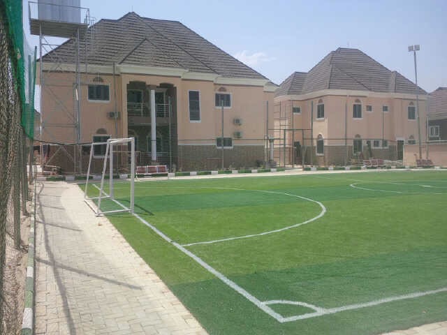 The duplex is tastefully furnished and it contains among many other amenities a swimming pool, a sizable football field with synthetic pitch, a mosque and a gym.